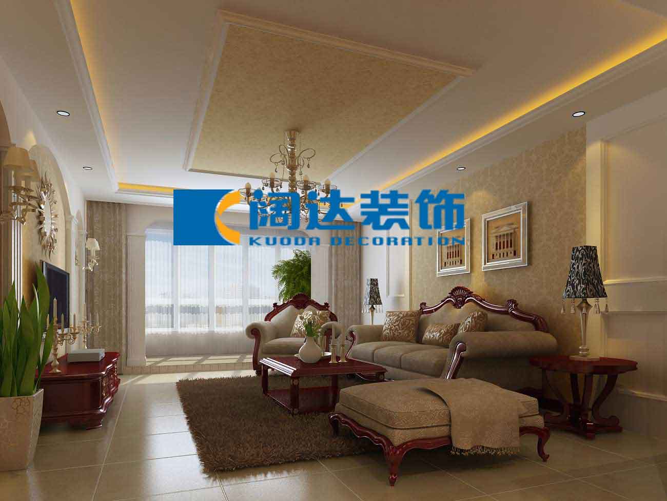 本案例采用歐式設計風格,通過整體色彩及家具的搭配營造自然、舒適、高雅的生活氛圍,此設計案例也在相當程度上表現出其居住者的品位、愛好和生活價值觀。