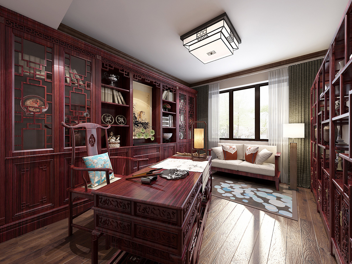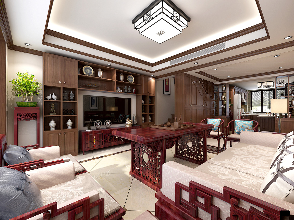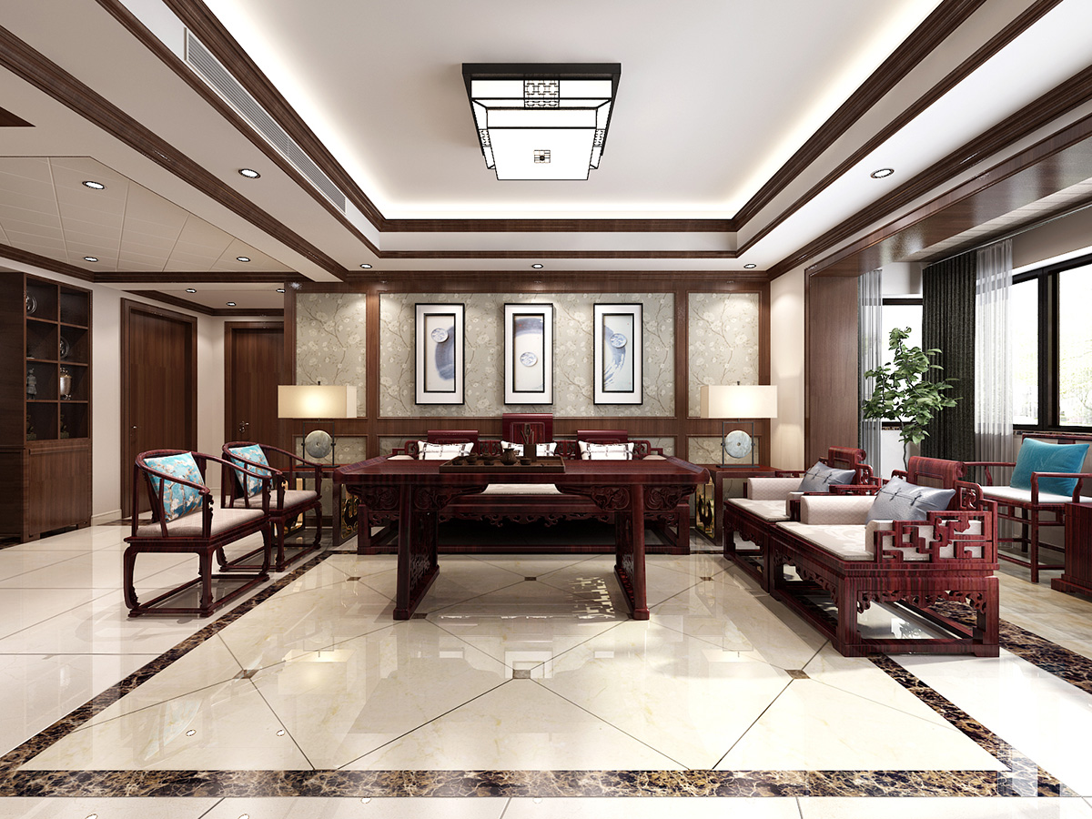 室內(nèi)多采用對(duì)稱式的布局方式,格調(diào)高雅,造型樸素優(yōu)美,色彩濃厚而成熟。空間上講究層次,多用隔窗、屏風(fēng)來分割,用實(shí)木做出結(jié)實(shí)的框架,以固定支架,中間用欞子雕花,做成古樸的圖案。一般都以木結(jié)構(gòu)為主,中式風(fēng)格都會(huì)比較對(duì)稱。另外會(huì)增加國(guó)畫、字畫、掛飾畫等做墻面裝飾,另外會(huì)增加些盆景以求和諧。