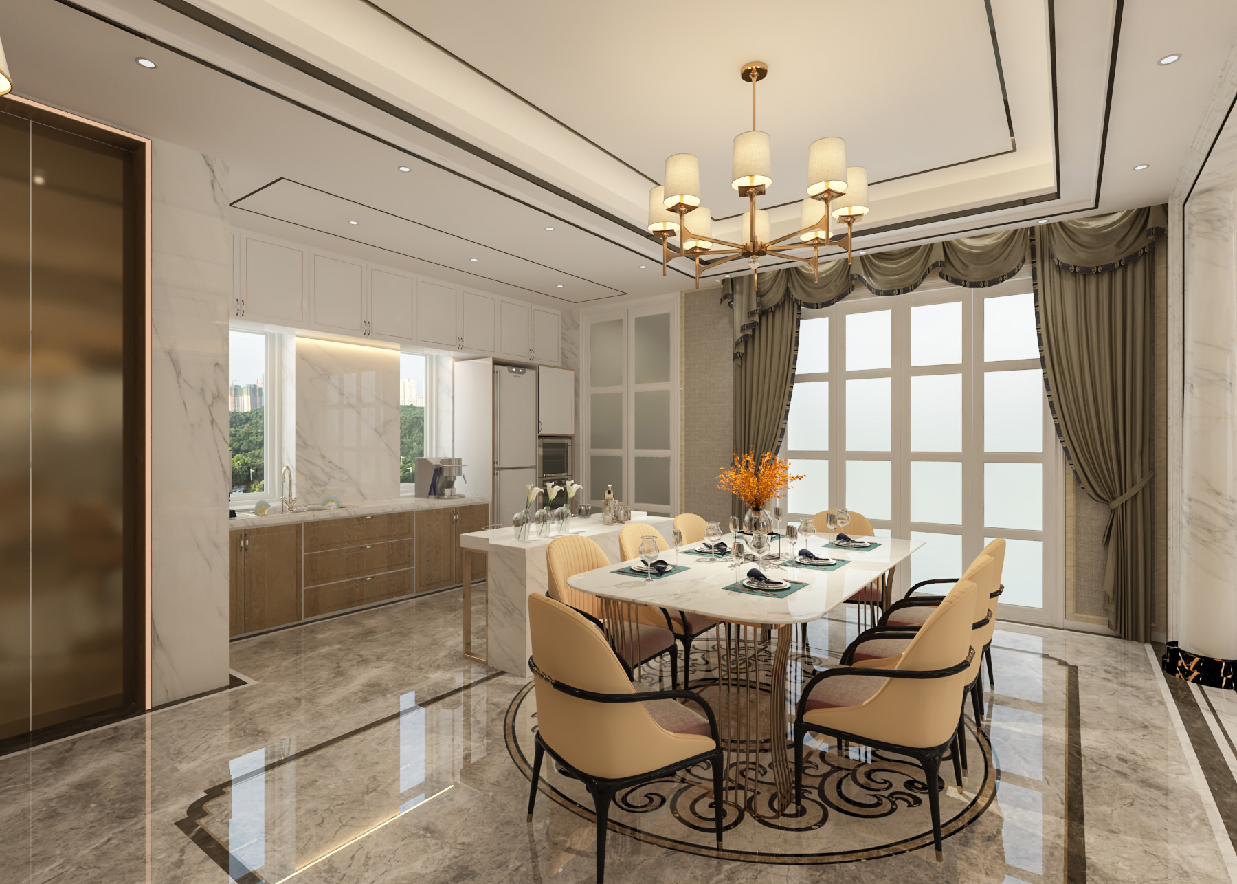 簡歐帶著一點(diǎn)輕奢的感覺,整個(gè)公共空間線條硬朗,材質(zhì)感比較強(qiáng),私密空間一溫馨舒適為主。同風(fēng)格案例:更多>>