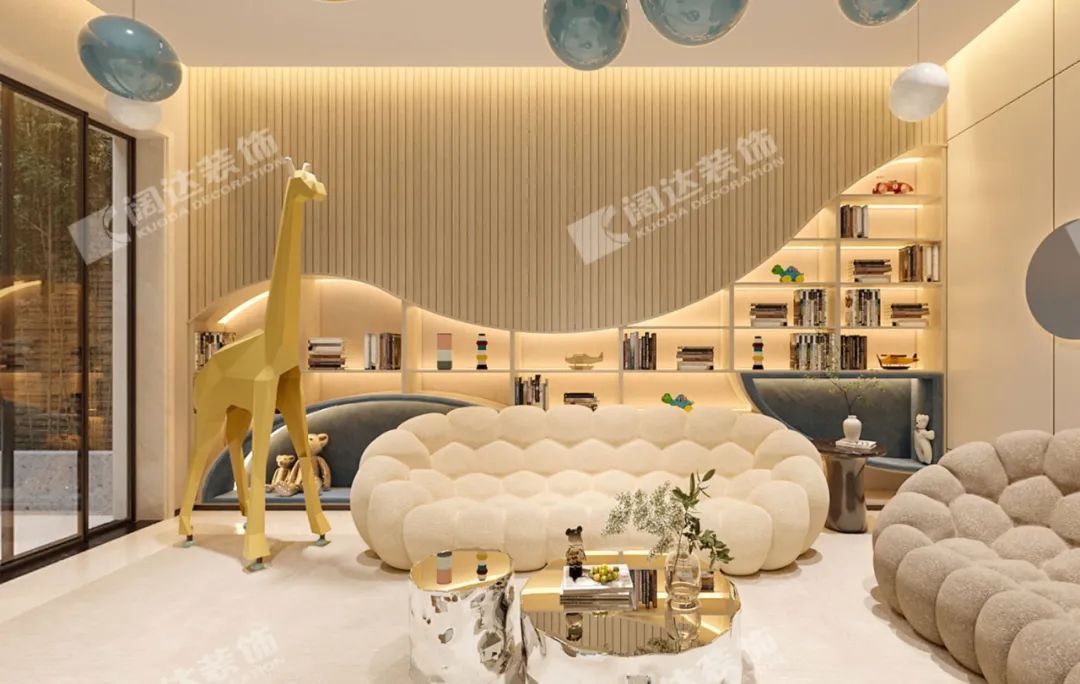 負(fù)一樓可以說(shuō)是一個(gè)注重社交屬性打造的空間,既可以作為孩子的學(xué)習(xí)區(qū)域,又可以用來(lái)接待朋友。