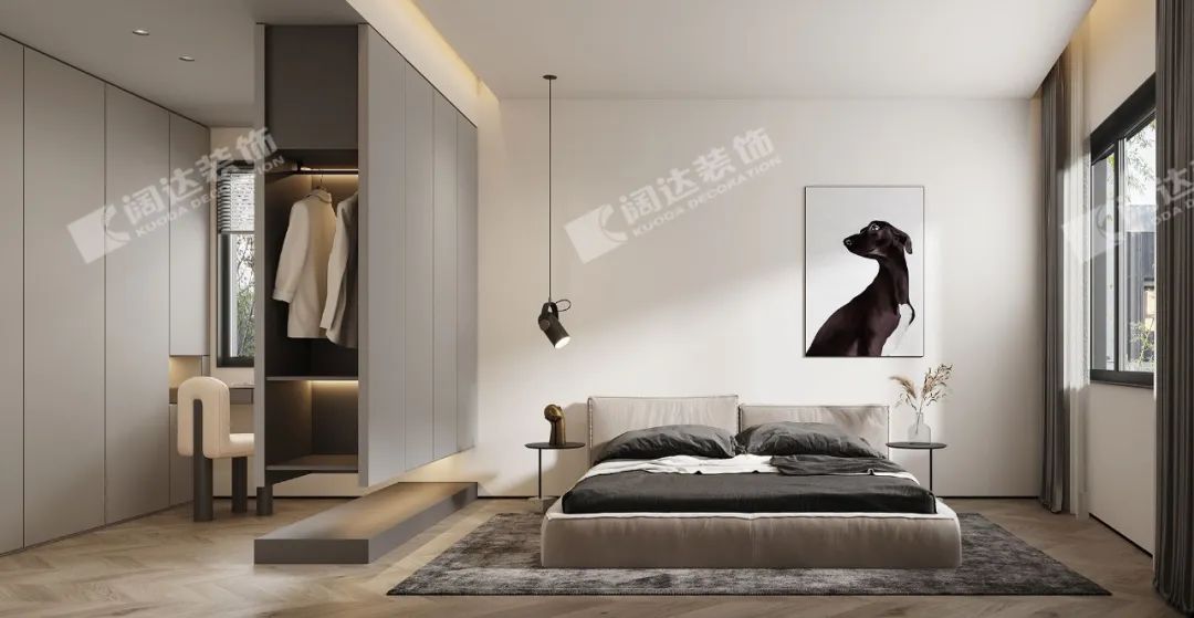 在個人獨立空間,針對每個房間使用者的生活習慣、需求去設(shè)立專屬他們的自在空間。比如進入房間隨手放置雜物的平臺、掛置外衣的區(qū)域、長輩房的起夜燈又或者喜好的色系等。