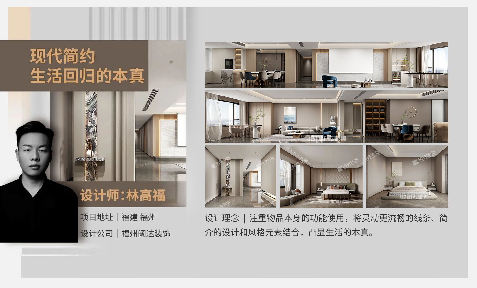 重用空間處理的設計手法,來強調空間的靈活分割,以追求設計的幾何性和秩序感,空間線條簡約、流暢。