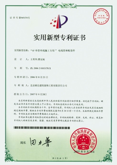 闊達(dá)裝飾核心專利技術(shù)——闊達(dá)4F單管單線