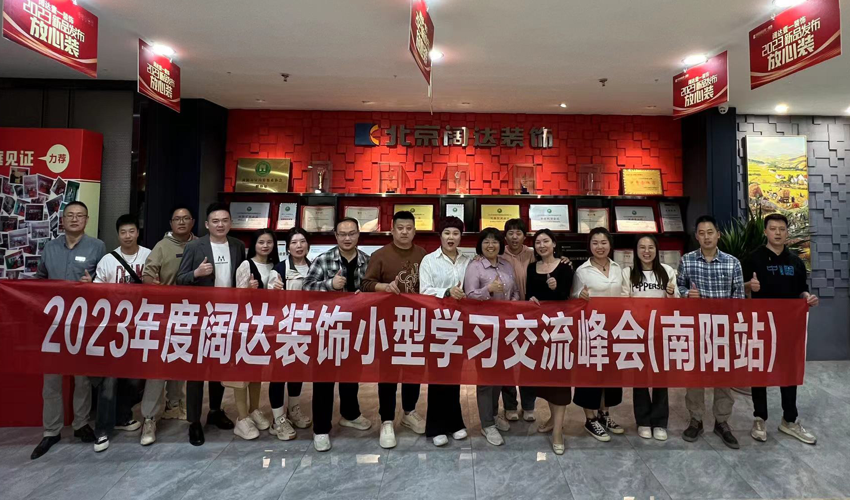2023年10月18至19日,由北京闊達裝飾集團特許加盟事業部、南陽闊達裝飾共同主辦的第二期“2023年度闊達體系小型學習交流峰會”再次南陽闊達裝飾公司舉行。